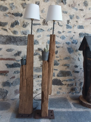 Réalisation de lampes décos  avec des matériaux recyclés lors de mes chantiers