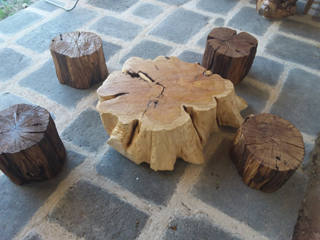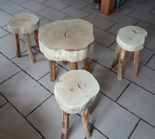 Réalisation de tabourets et tables basses  avec des matériaux recyclés lors de mes chantiers